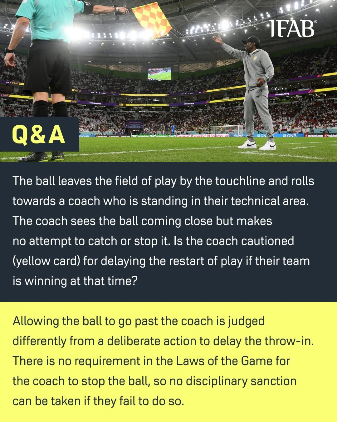 Common Misconception: Many people, referees, players and more, often think that a Yellow Card must be given in this situation. That is incorrect. The only time you need to give a Yellow Card is if this Stops a Promising Attack or causes additional problems or confrontations to players.